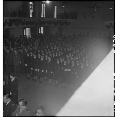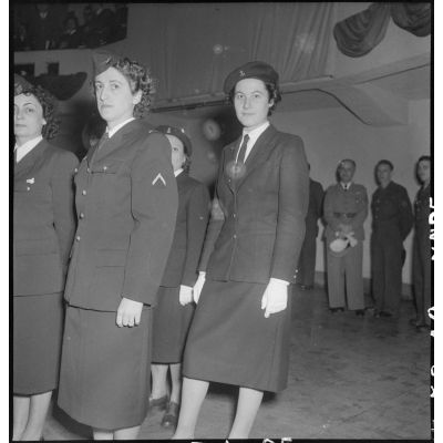 Personnel féminin de l'armée de l'Air lors de la prise d'armes du personnel féminin de l'armée de Terre au stade Mangin.