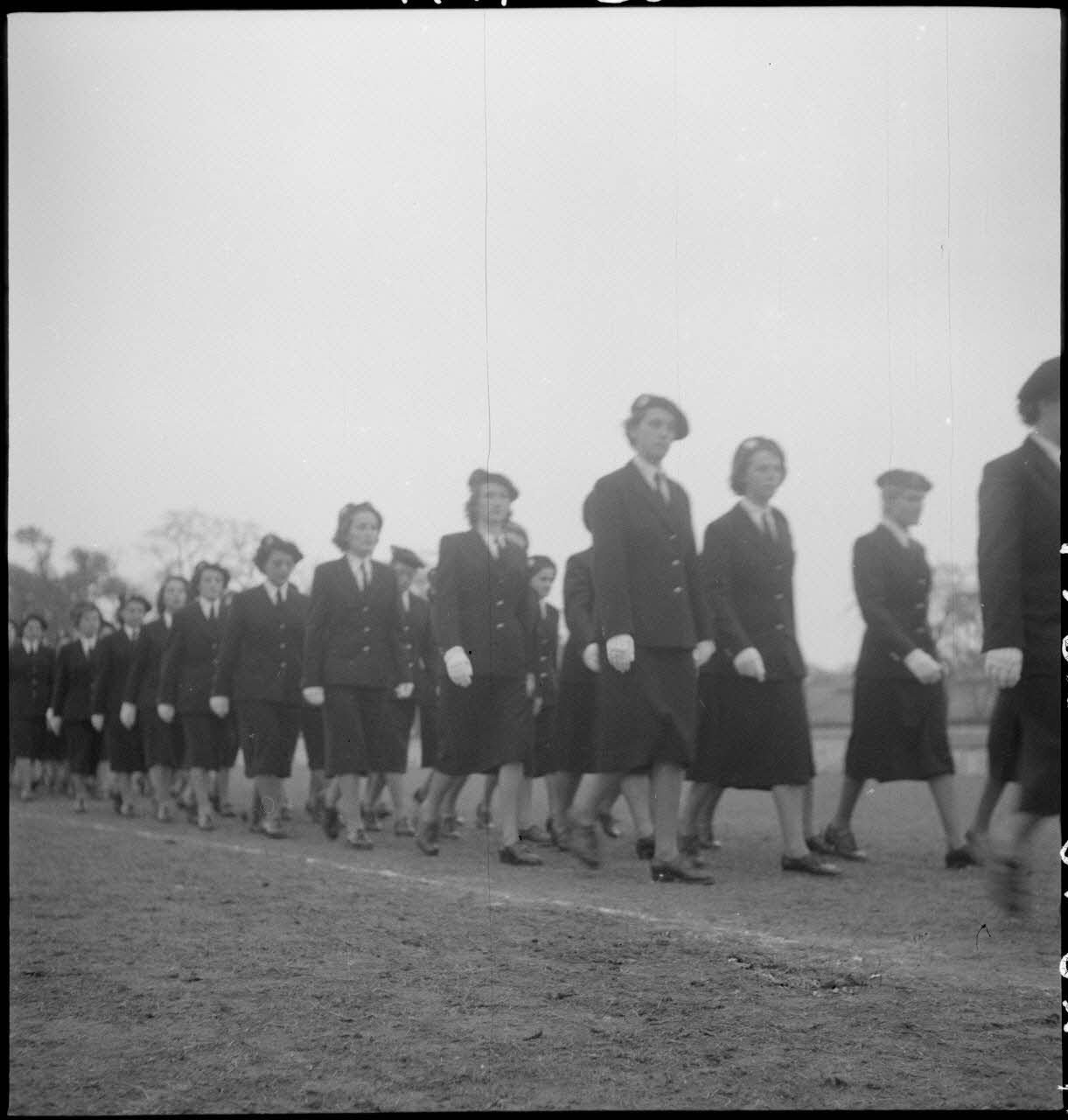 Personnel féminin de l'armée de l'Air lors de la prise d'armes du personnel féminin de l'armée de Terre au stade Mangin.