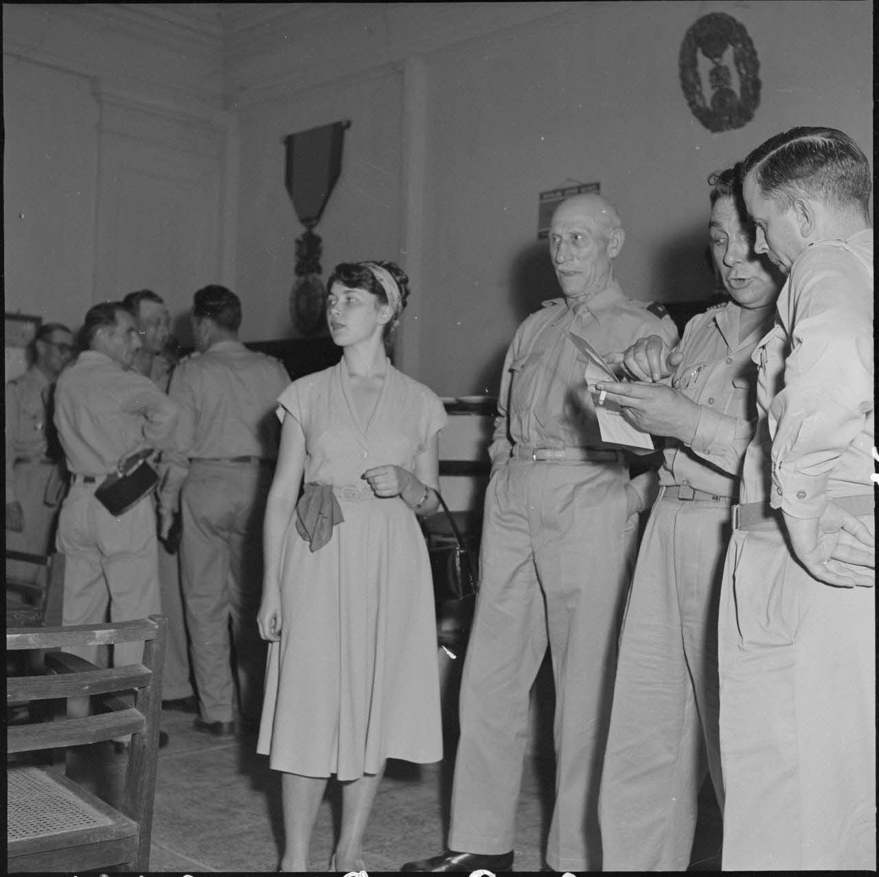 Le général Stehle, une jeune femme et un officer à une réunion des AET (Anciens enfants de troupe) à la maison des combattants.