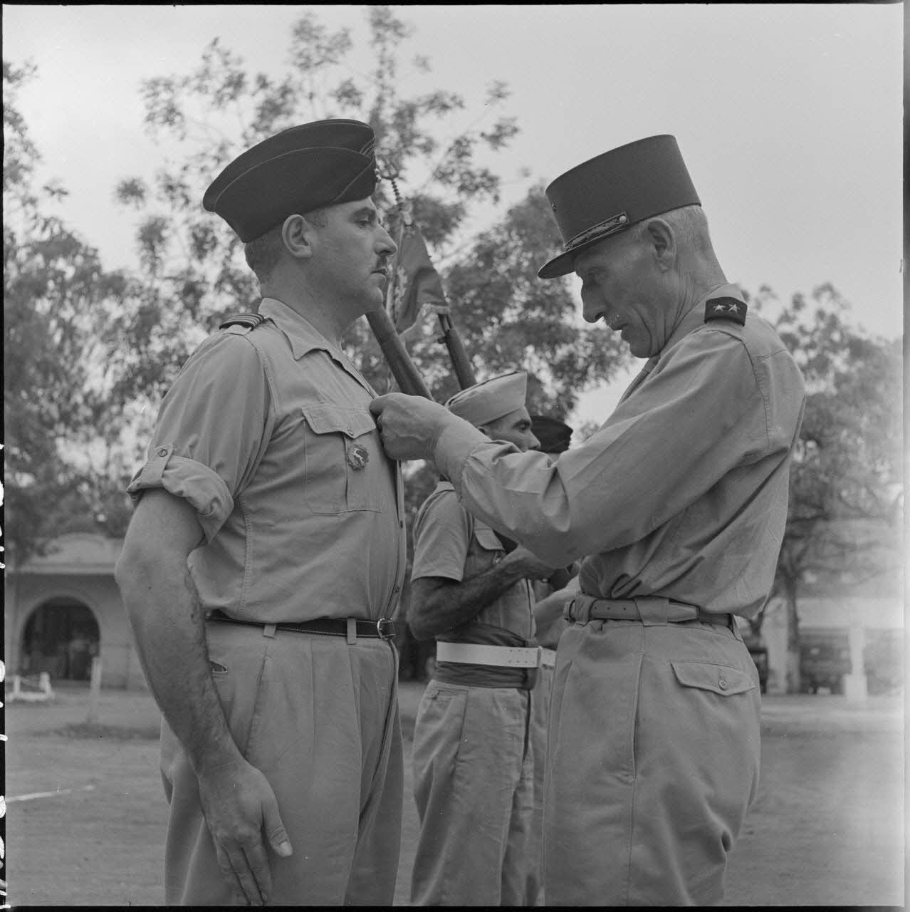 Le général Stehle remet ses décorations à un chef de bataillon du GT (groupe de transport) 515.
