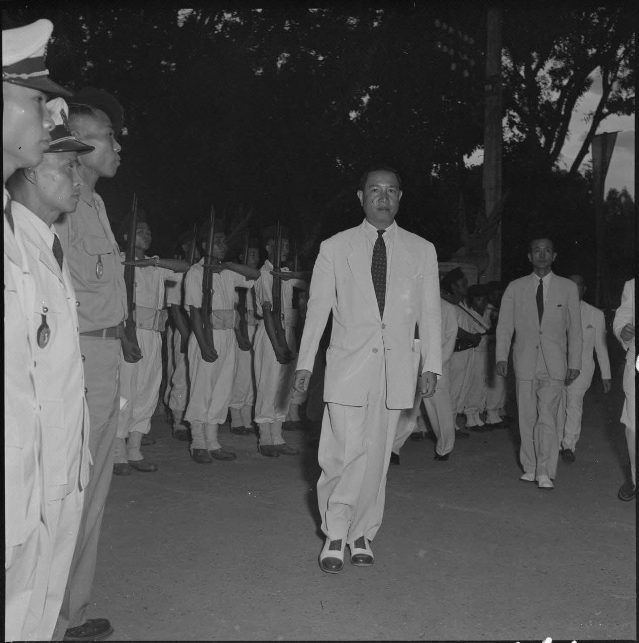 Le général de Linarès et M. Pham Van Binh discutent avec un jeune officier de la promotion Hoang Dieu.