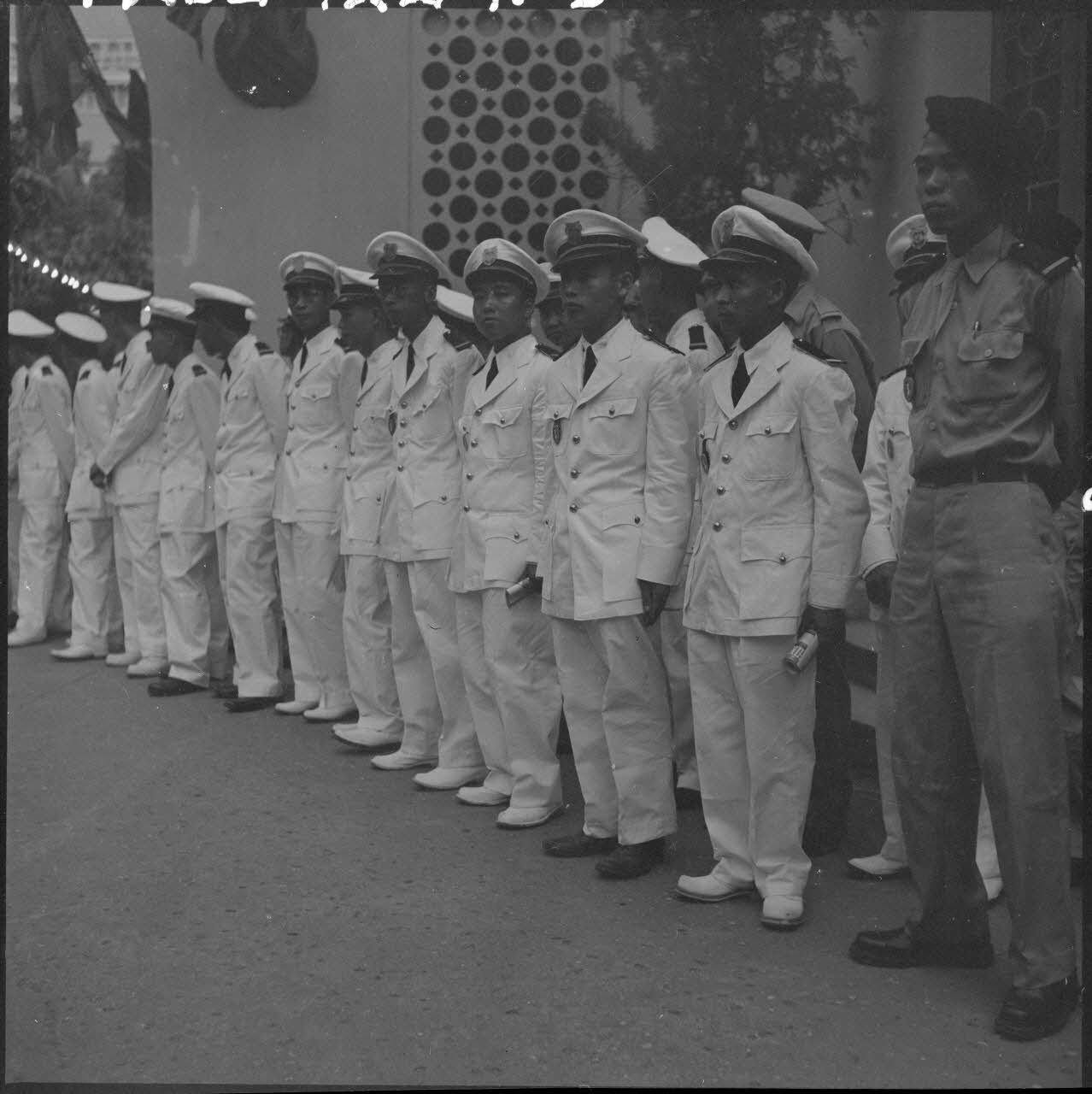 Le général de Linarès et M. Pham Van Binh discutent avec un jeune officier de la promotion Hoang Dieu.