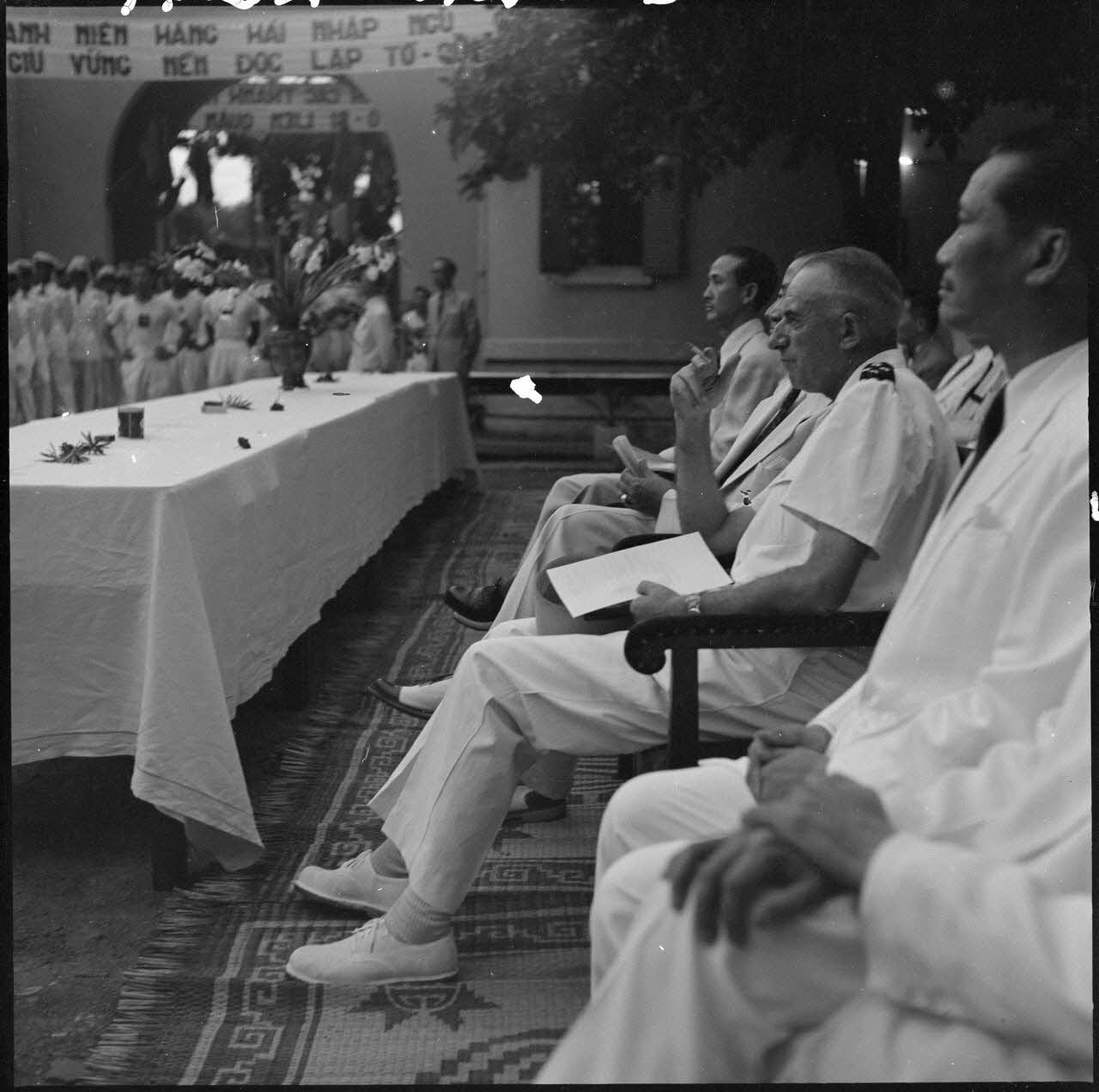 M. Pham Van Binh, le général de Linarès et le délégué du cabinet impérial M. Le-Thanh-Canh à la réception organisée en l'honneur des officiers vietnamiens de la promotion Hoang Dieu.