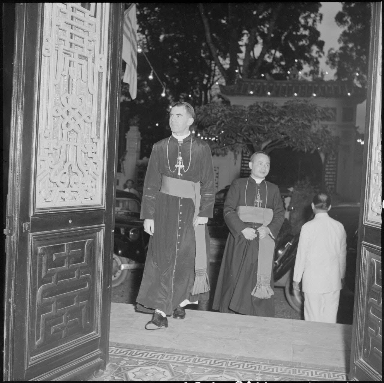 Mgr John Dooley, archevêque de Macra et délégué apostolique en Indochine et en Thaïlande, et Mgr Trinh Nhu Khue, évêque d'Hanoï sont invité au cocktail organisé par M. ¨Pham Van Binh, gouverneur du Nord-Vietnam.