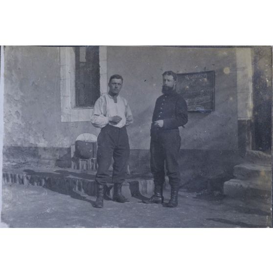 Casernement du plateau - le cheval du capitaine. Tisserandet. Laurent (15 grammes) et son chien. [légende d'origine]