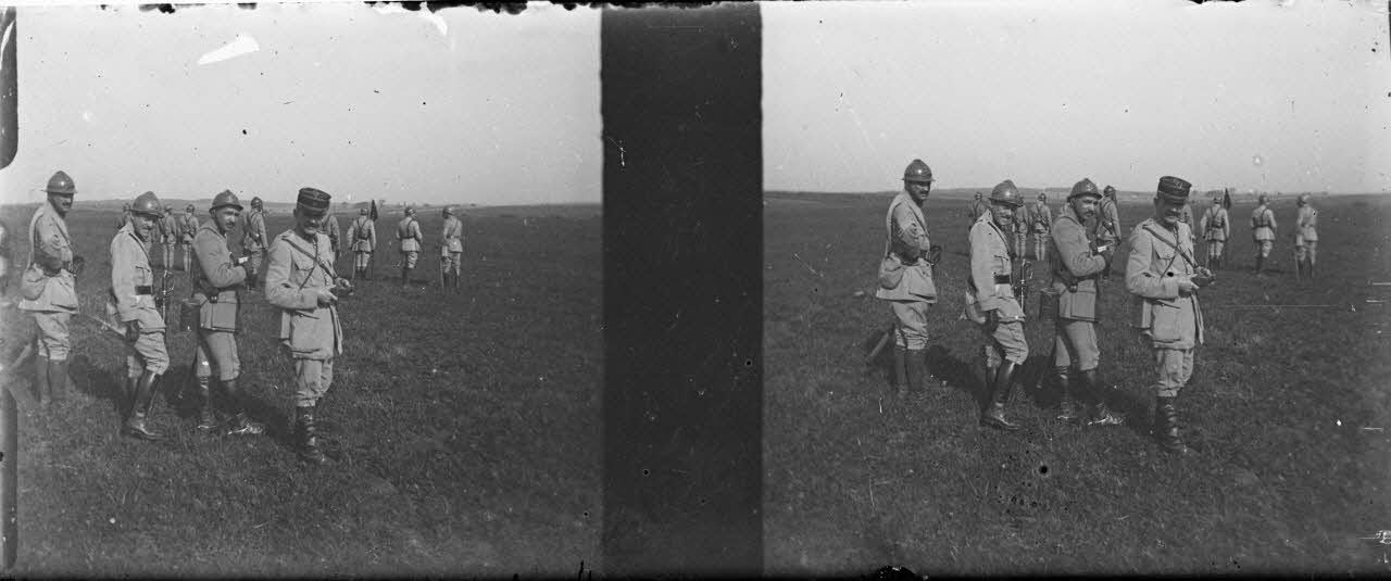 L'un des militaires tient dans ses mains un appareil photographique stéréoscopique.