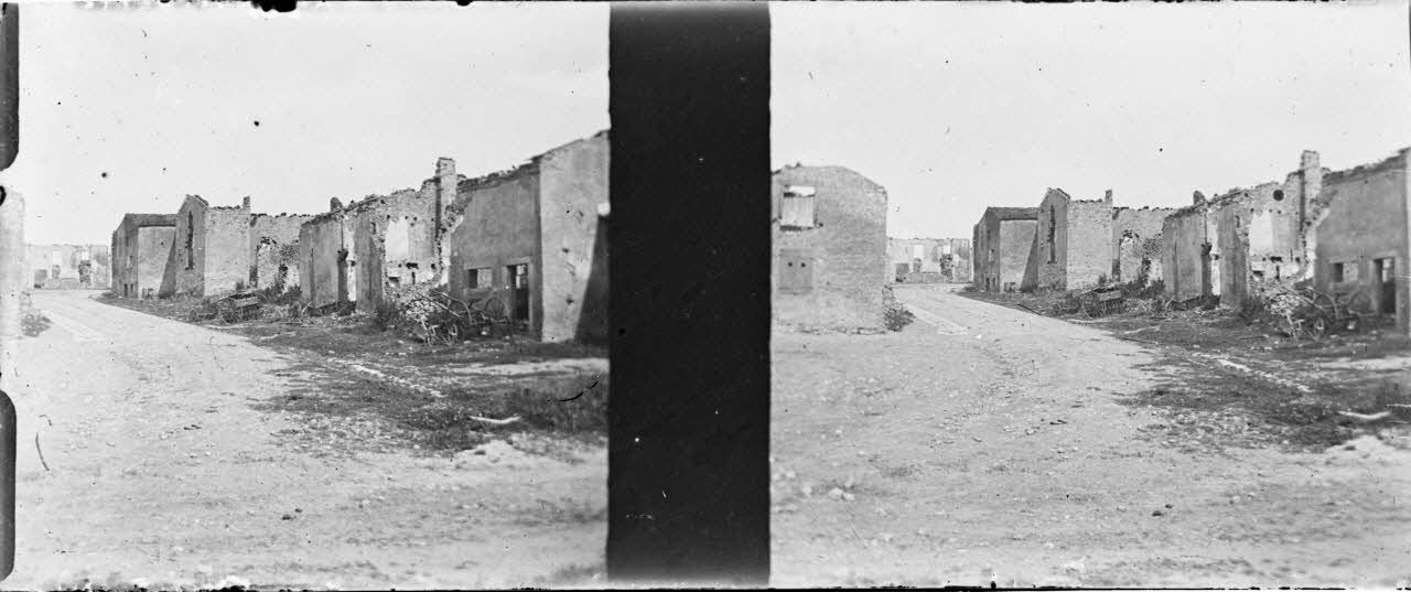 Description des négatifs et des positifs sur plaque de verre réalisés par le médecin Georges Bertrand (1887-1937). Datées pour certaines d'entre elles entre 1917 et 1918, ces photographies abordent notamment les points suivants : les grottes de Selens (Aisne), le secteur et la ville, l'explosion du dépôt de grenades de Nixeville en juillet 1917, les positions du 2e groupe du 56e régiment d'artillerie au Mort-Homme en 1917, Verdun.