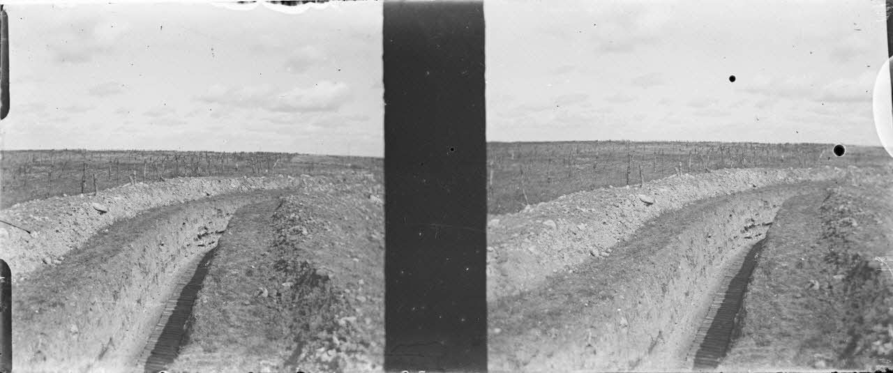 Description des négatifs et des positifs sur plaque de verre réalisés par le médecin Georges Bertrand (1887-1937). Datées pour certaines d'entre elles entre 1917 et 1918, ces photographies abordent notamment les points suivants : les grottes de Selens (Aisne), le secteur et la ville, l'explosion du dépôt de grenades de Nixeville en juillet 1917, les positions du 2e groupe du 56e régiment d'artillerie au Mort-Homme en 1917, Verdun.