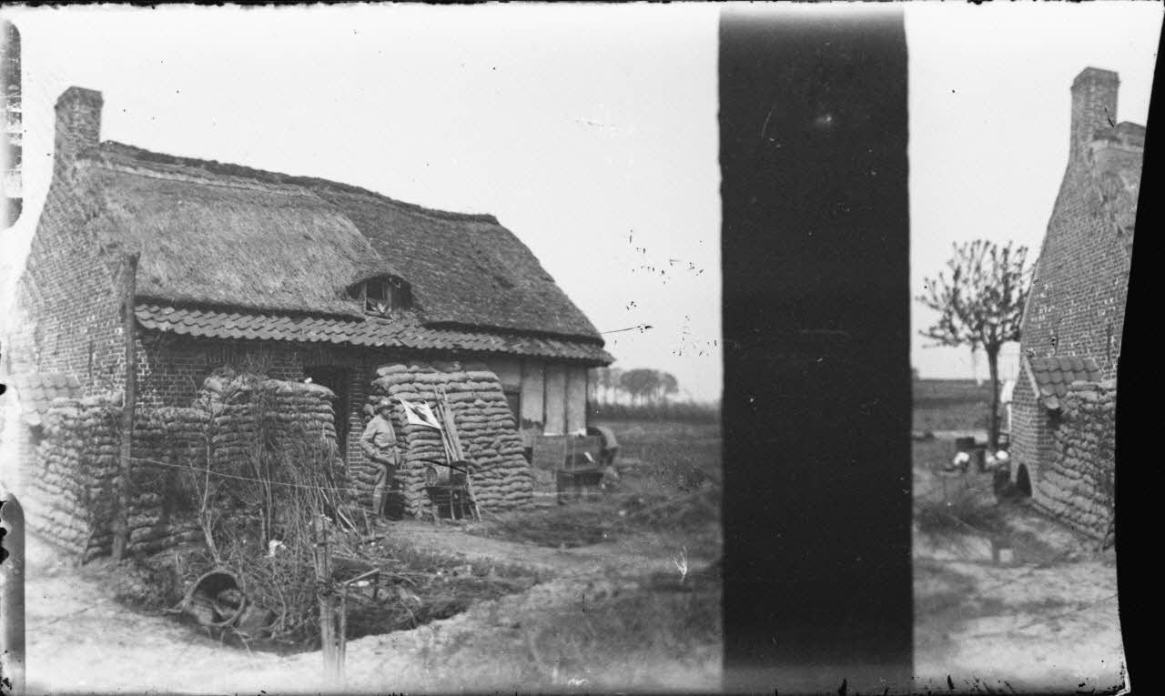 [Une chaumière servant d'abri militaire pendant la Première Guerre mondiale].