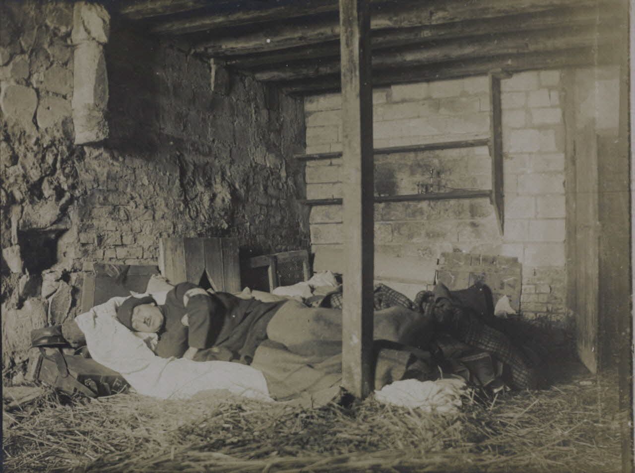 42. Notre cave dortoir à St Hilaire le Grand. Intérieur de la cave de la maison Voinchet. [légende d'origine]