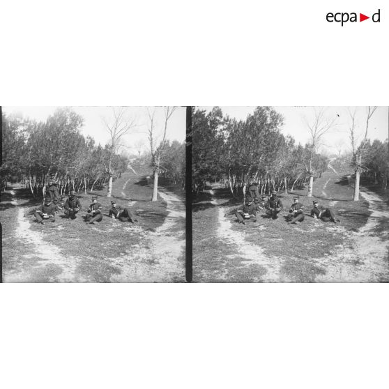 480. Groupe de sous-officiers de la 5e compagnie du 2e régiment étranger dans la palmeraie. Bourriquot.
