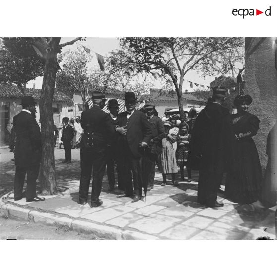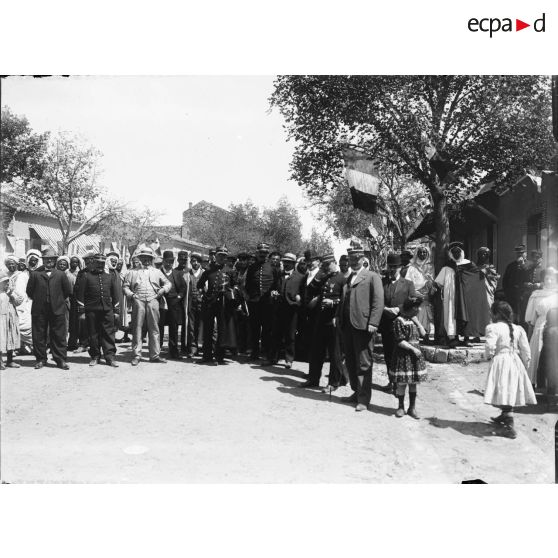 Le député d'Oran Eugène Etienne en automobile dans une rue bondée de Géryville.