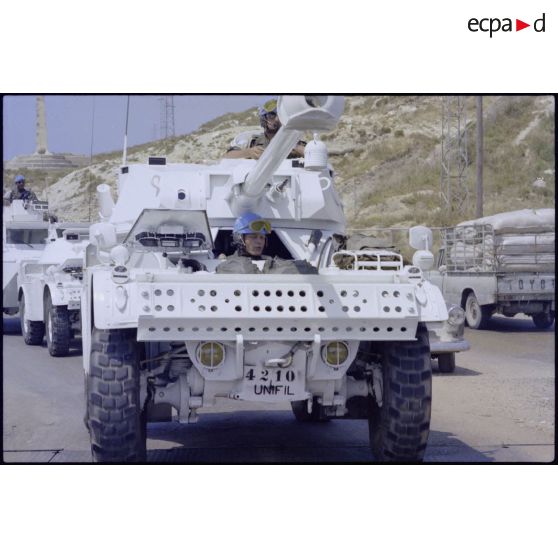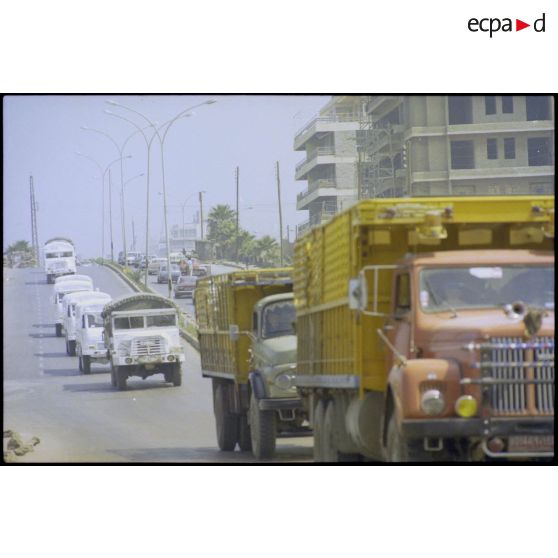 Le convoi du bataillon français de la FINUL dans un faubourg de Beyrouth.