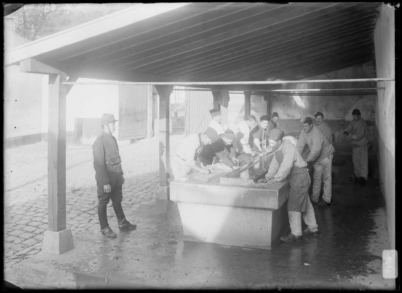 Infanterie - La lessive du régiment sous les yeux du sous-officier. [légende d'origine]