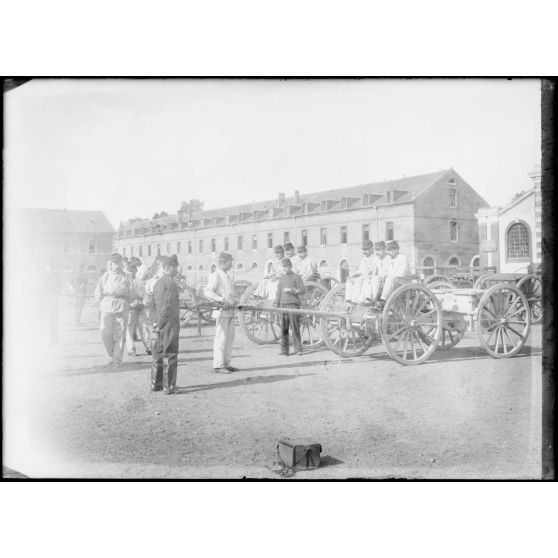 Artillerie - Manœuvres autour du canon avec les caissons d'artillerie.