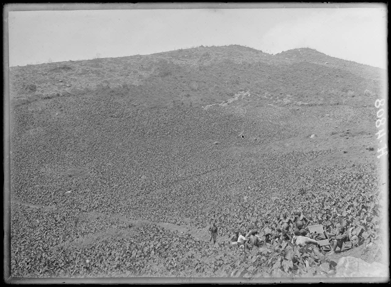 De Mbureku à Poala, altitude 1800 m environ. Culture de macabos sur les pentes de l'Eboga. [légende d'origine]