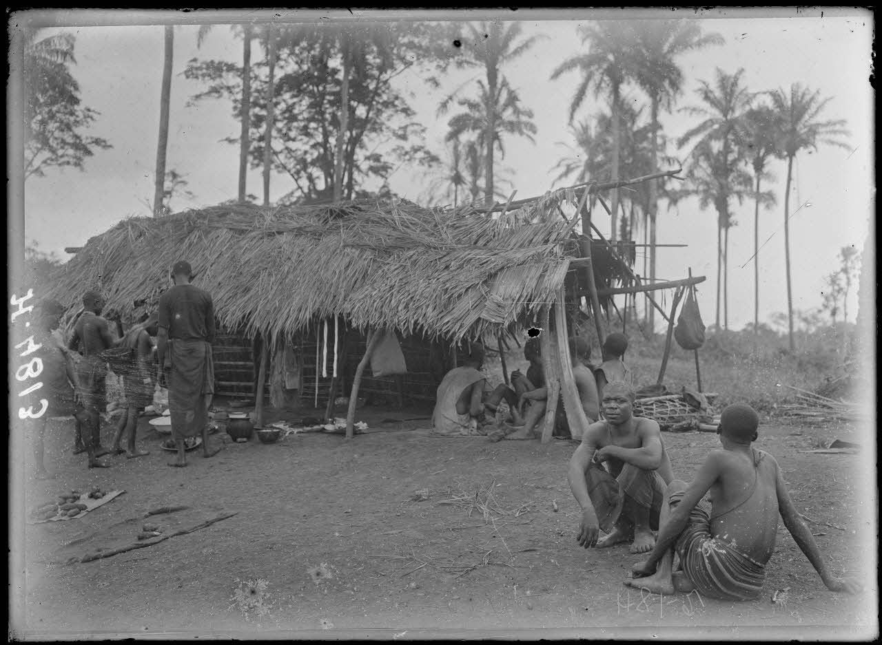 Mbureku, altitude 1315 m. Une vue sur le village, confection d'une hutte.