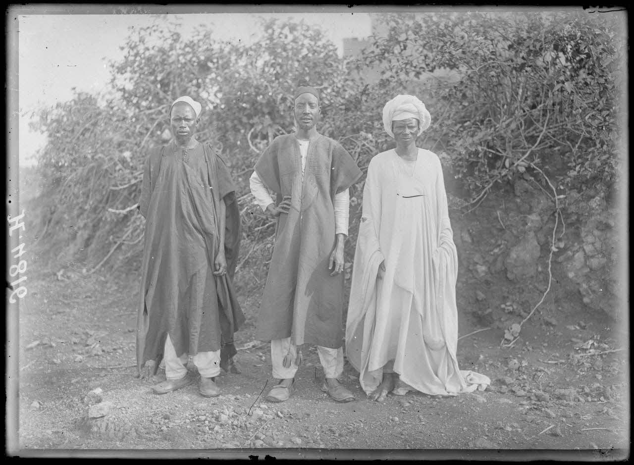 Baré. Mama Damagara (au milieu) et deux sous-chefs haoussa. [légende d'origine]