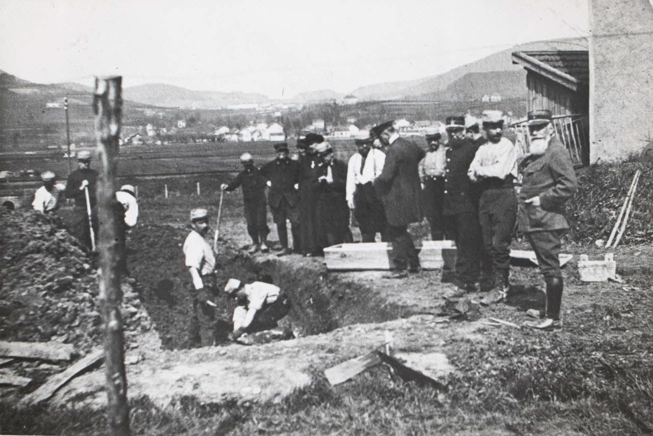 74. S][ain]t Dié. Les Tiges. Exhumations. 27 avril [19]15. [légende d'origine]