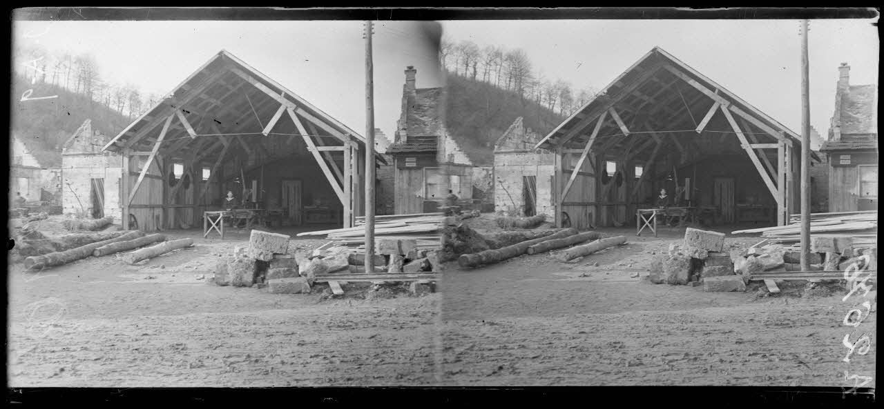 Nampcel, Oise, scierie construite par l'ARC pour les travaux de reconstruction. [Légende d'origine]