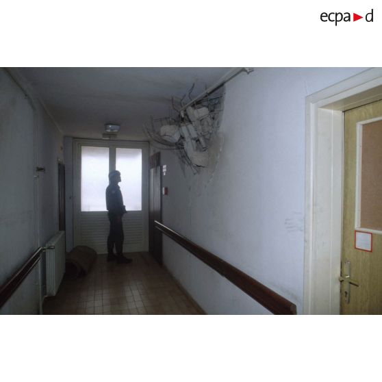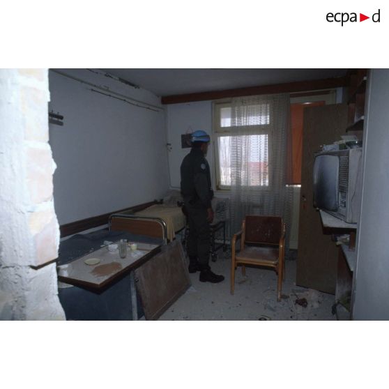 - Activités des personnels de l'état-major de la FORPRONU en Bosnie au quartier général installé dans un ancien hôtel de Kiseljak.