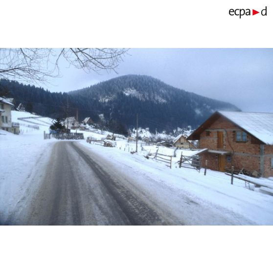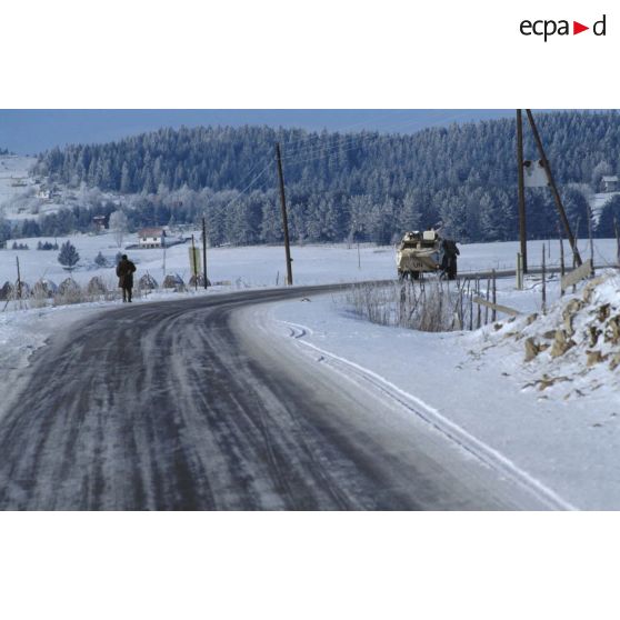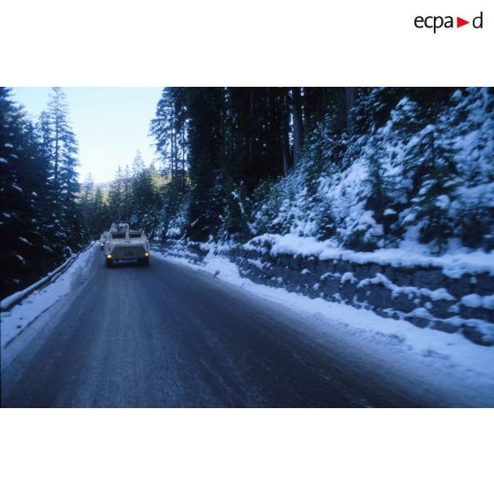 Convoi de VAB du BAT INF 2 (RICM) sur les routes bosniaques enneigées en direction de Rogatica.