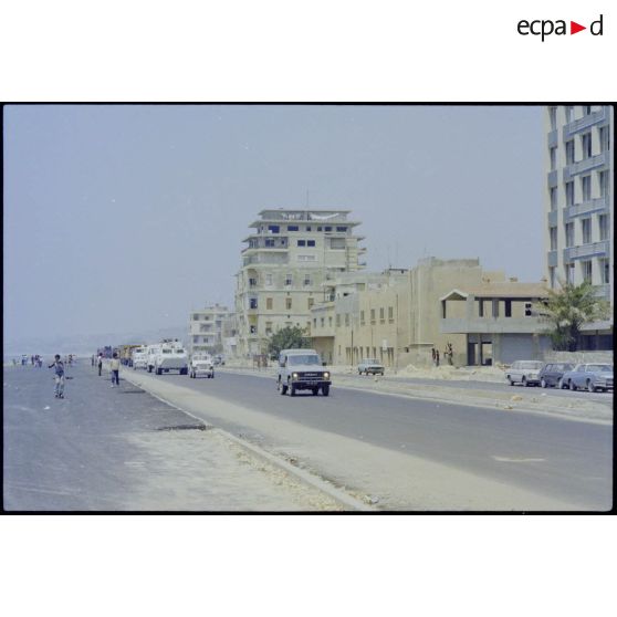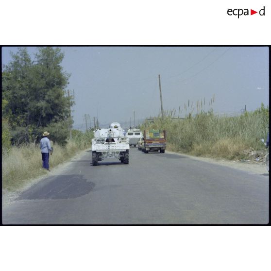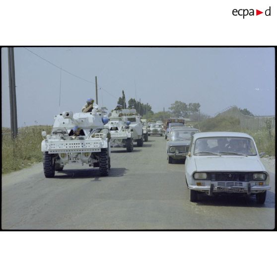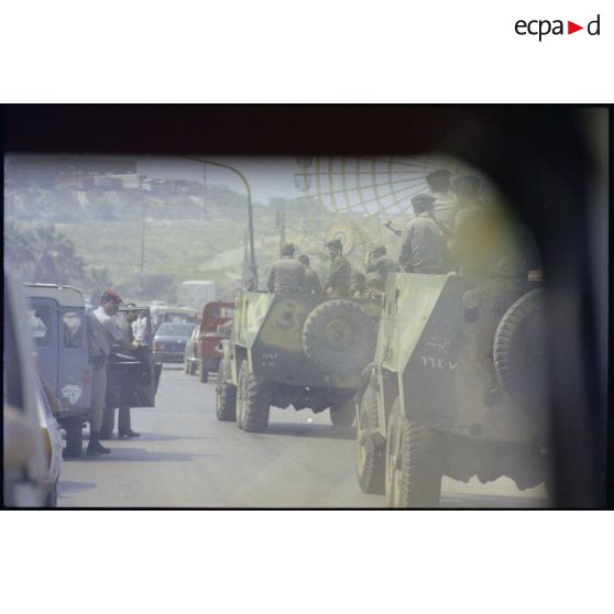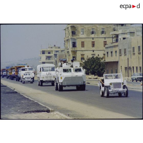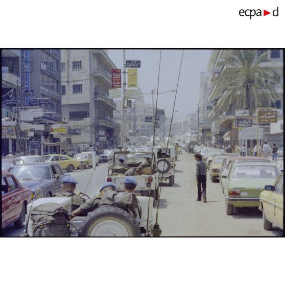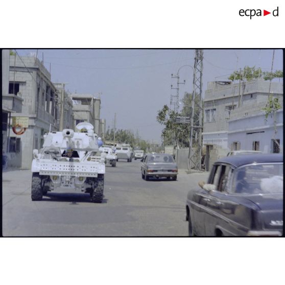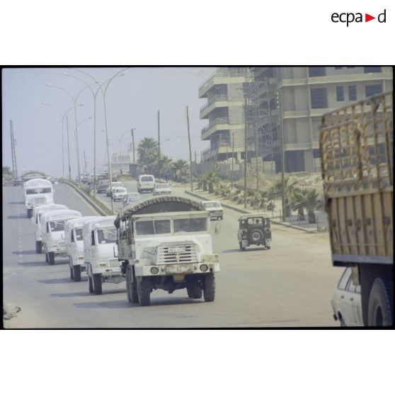 Le convoi du bataillon français de la FINUL dans un faubourg de Beyrouth.