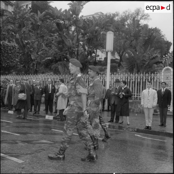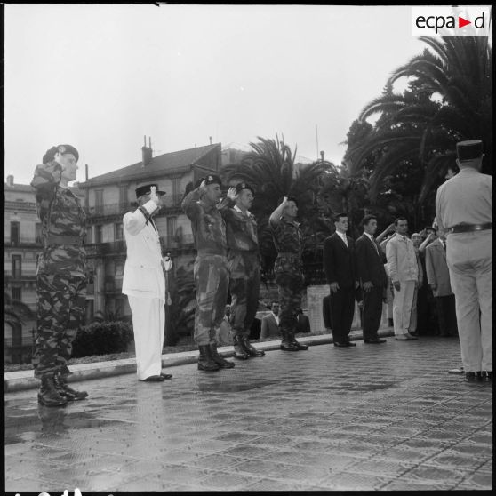 Une cérémonie est organisée à l’occasion de la remise du drapeau des anciens du 3e RPC devant le monument aux morts de la ville d’Alger (R3570 à R3581). Le général Massu, le colonel Bigeard, le colonel Trinquier et le capitaine Léger (anciens commandants du régiment) saluent le monument (R3570 à R3575), une gerbe de fleurs y est déposée (R3576 à R3579). Après cette cérémonie, les officiels quittent les lieux (R3587 à R3593), le colonel Bigeard salut le drapeau et les troupes au pied du monument aux morts ensuite rejoint par le général Massu, le colonel Trinquier et le capitaine Léger (R3580-R3581 et R3606 à R3617). Selon la légende d’origine, une algéroise aborde Bigeard pour évoquer le temps où il menait la bataille d’Alger (R3587 et R3588). Les officiers présents lors de la cérémonie participent ensuite à une réception des anciens du 3e RPC (R3582 à R3586, R3594 à R3605 et R3628 à R3629, R3663). Visite d’une gendarmerie du secteur de Saïda, scènes de la vie quotidienne des militaires, de jeunes enfants y sont également présents (R3618 à R3627, R3630 à R3638).