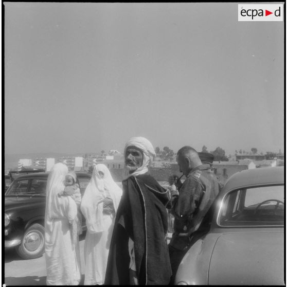 Le colonel Bigeard et des civils d'origine algérienne.