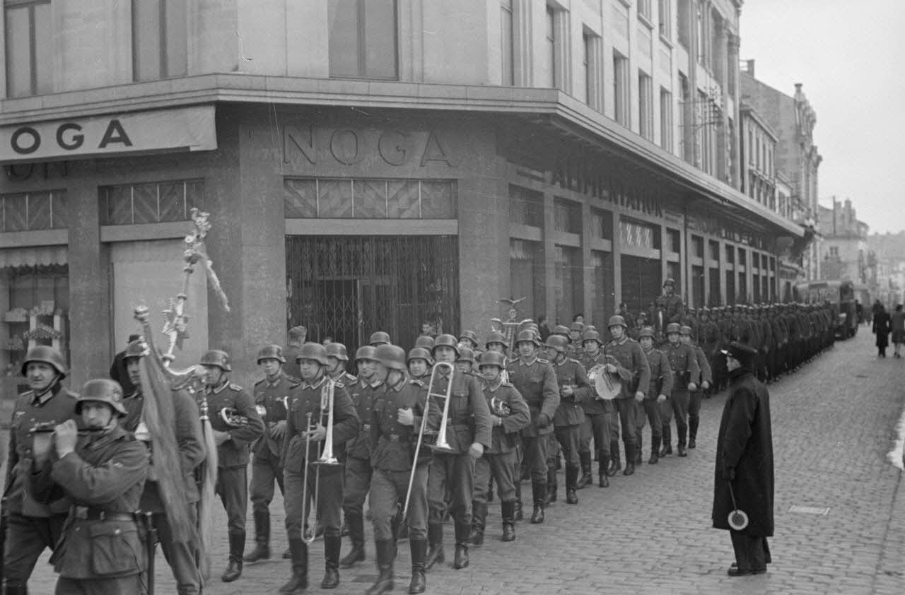 A Angoulême, la relève de la garde rythmée par la musique militaire allemande.