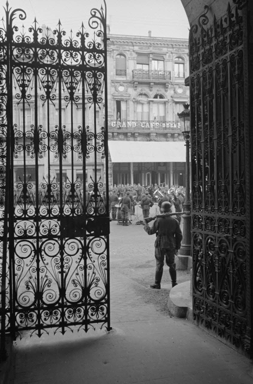 A Angoulême, la relève de la garde rythmée par la musique militaire allemande.