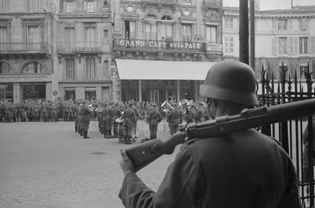A Angoulême, la relève de la garde rythmée par la musique militaire allemande.
