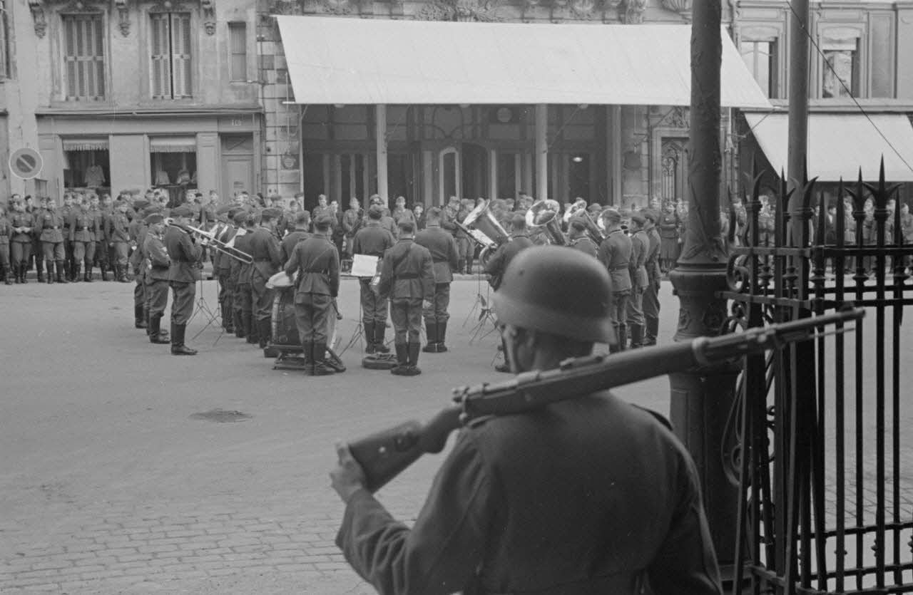 A Angoulême, la relève de la garde rythmée par la musique militaire allemande.
