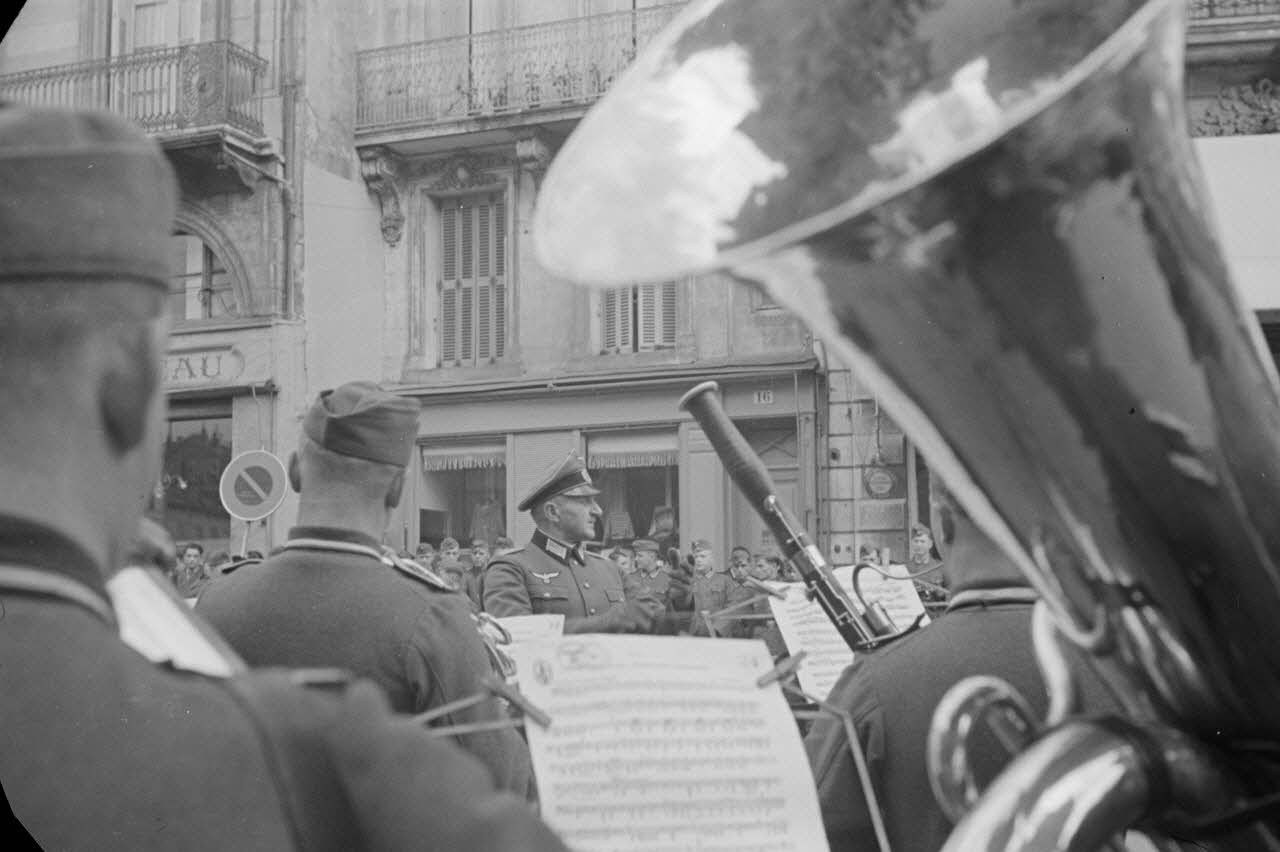 A Angoulême, la relève de la garde rythmée par la musique militaire allemande.