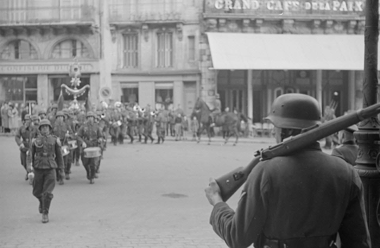 A Angoulême, la relève de la garde rythmée par la musique militaire allemande.