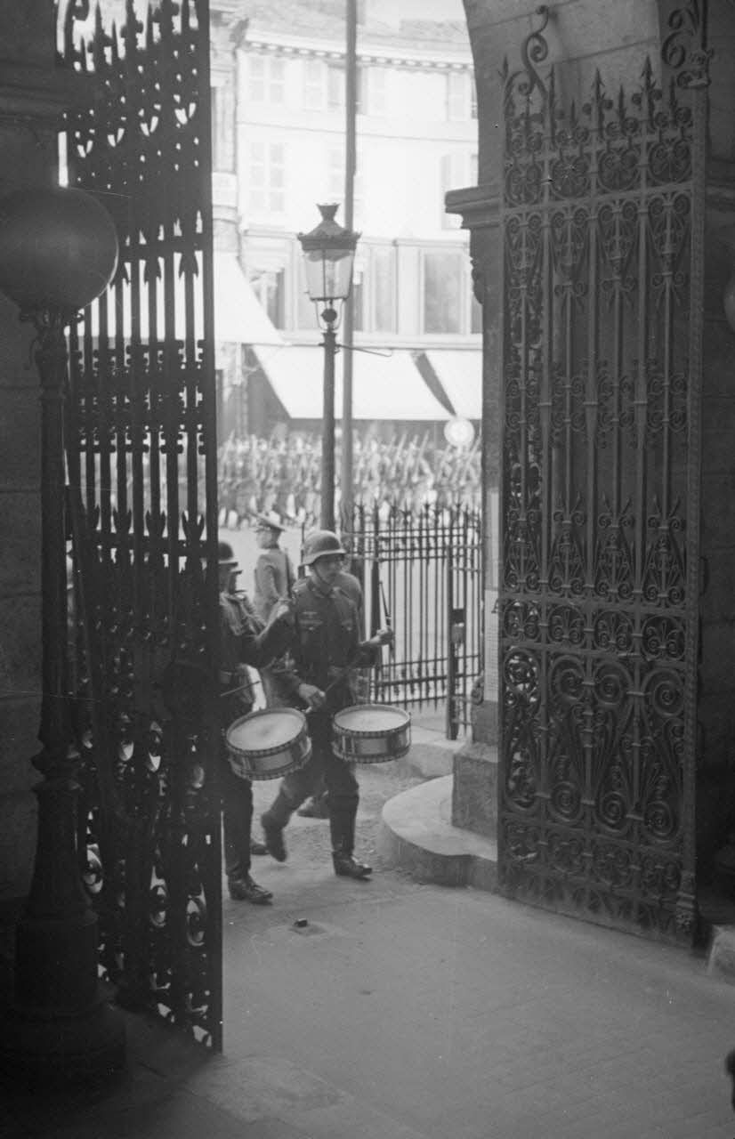 A Angoulême, la relève de la garde rythmée par la musique militaire allemande.