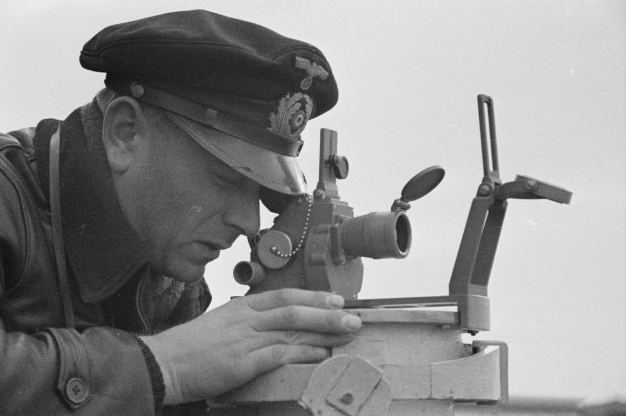 A bord d'un dragueur de mines (Minensuchboot), orientation à l'aide de matériel optique.