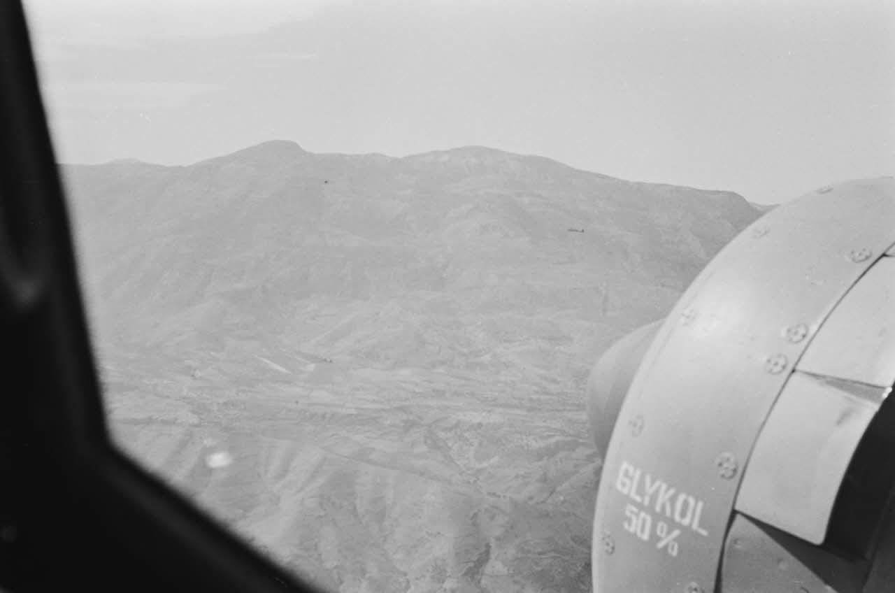 A bord d'un Junkers Ju-88 du Aufklärungsgruppe 123, le survol des montagnes crétoises peu après le départ en mission de reconnaissance.
