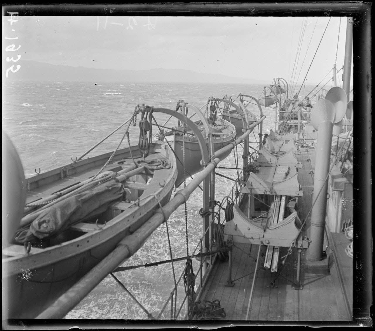 A bord de l'Algérie. Canots de sauvetage prêts à être mis à la mer. [légende d'origine]