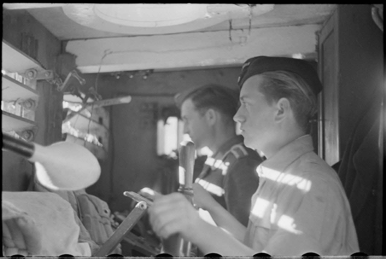 A bord de la cabine de pilotage d'un navire de la Kriegsmarine.