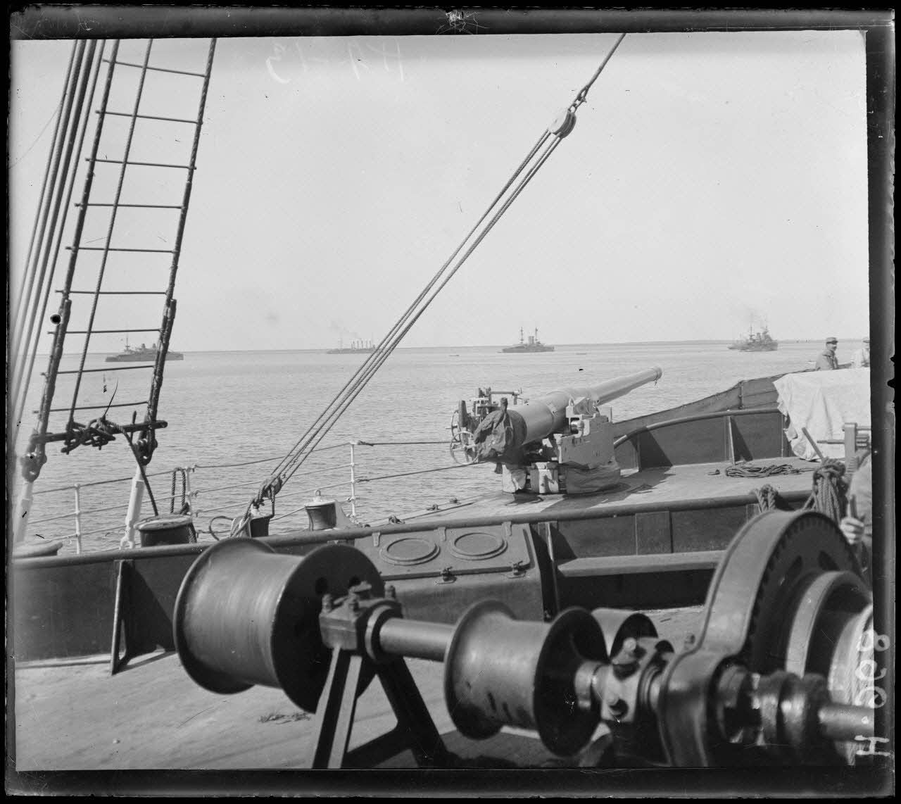 A bord de la Provence. L'escadre française sur la rade de Salonique. [légende d'origine]