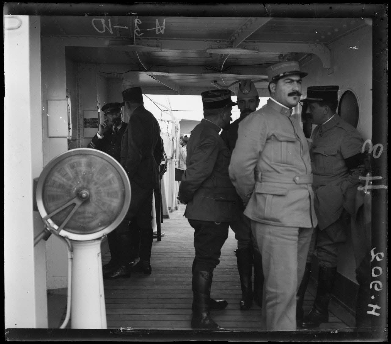 A bord de "La Provence". Sur la passerelle, le général Sarrail.