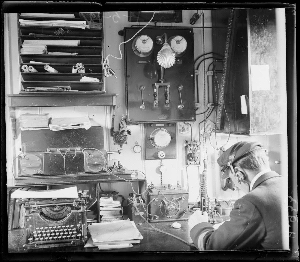 A bord de "La Provence". Le poste de TSF. [légende d'origine]