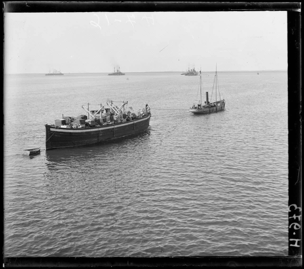 A bord de la Provence. Débarquement des voitures sur les chalands.