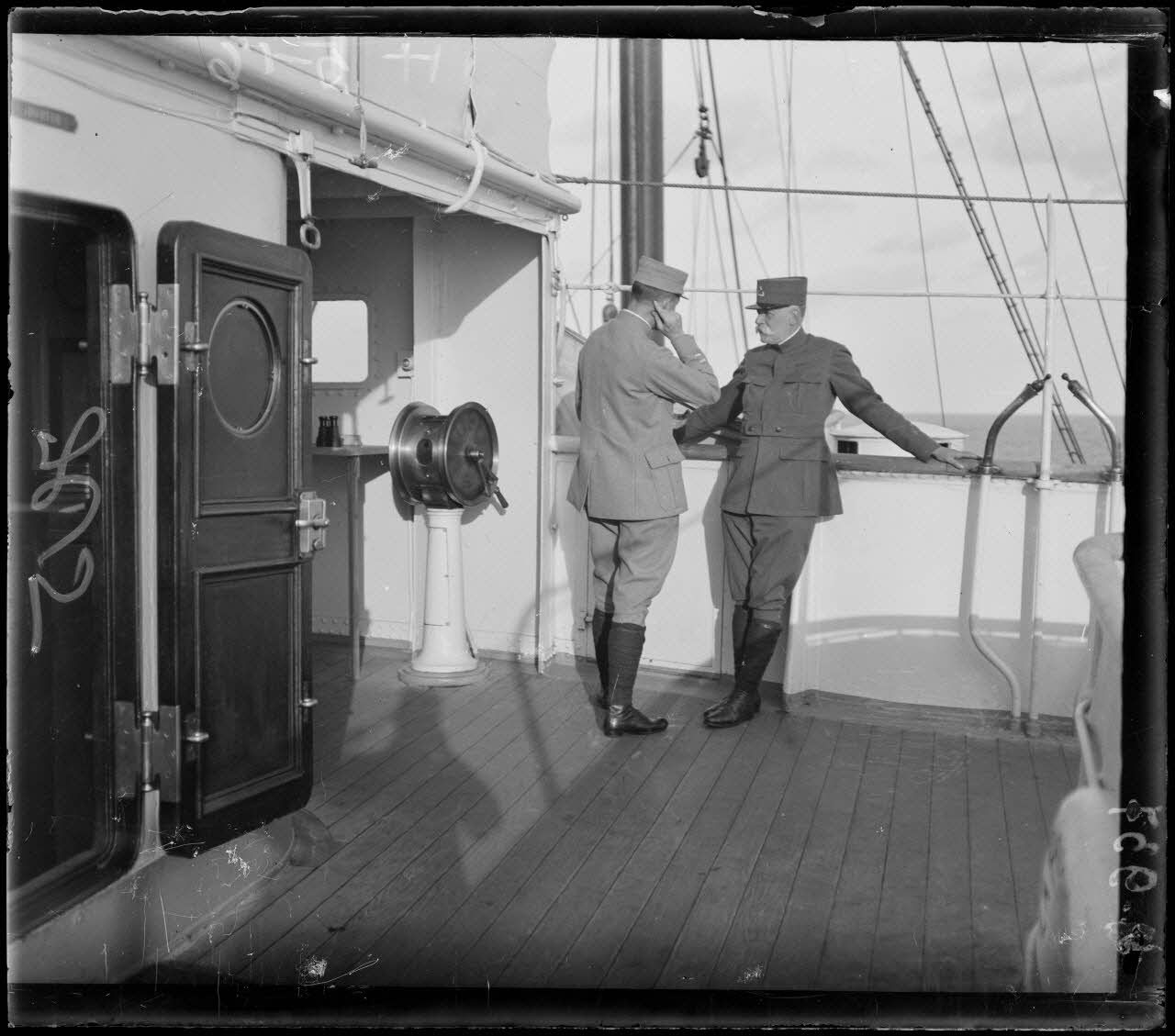 A bord de La Provence. Le général Sarrail sur la passerelle, causant avec le commandant Vasco.