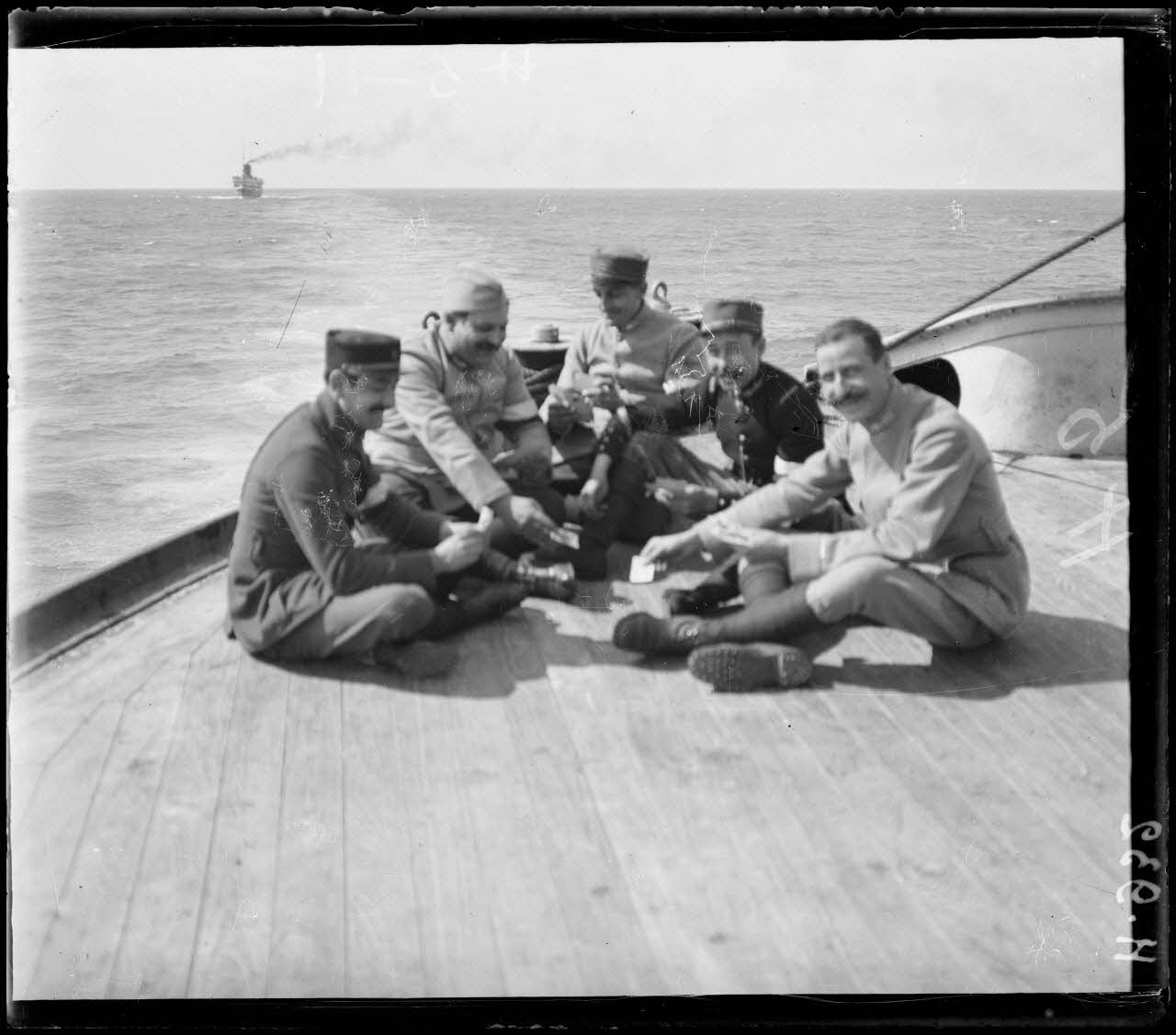 A bord de "La Provence". Une partie de cartes. [légende d'origine]