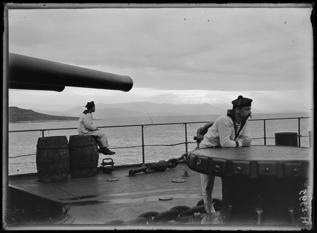En rade de Corfou. A bord du Waldeck Rousseau, le nettoyage du matin.
