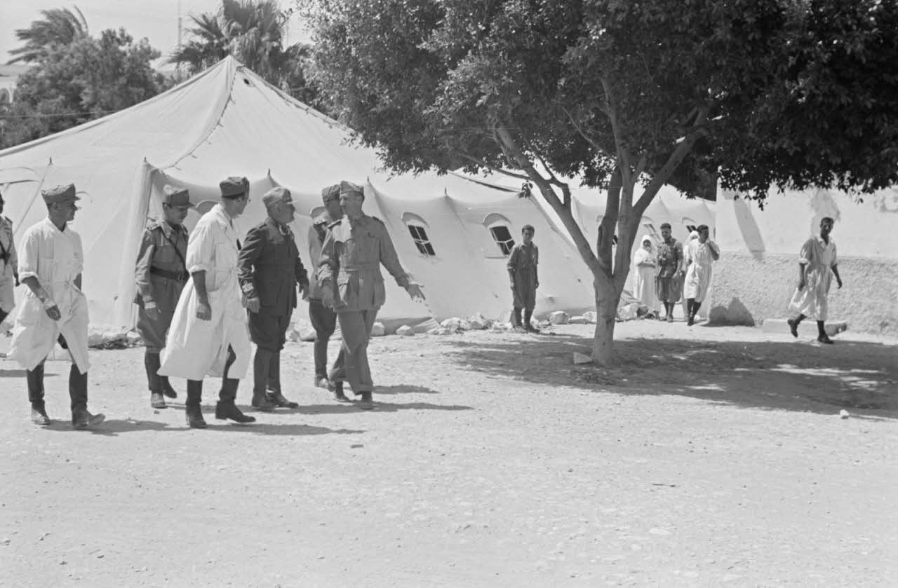 A Derna, la visite de Benito Mussolini dans un hôpital militaire italien.