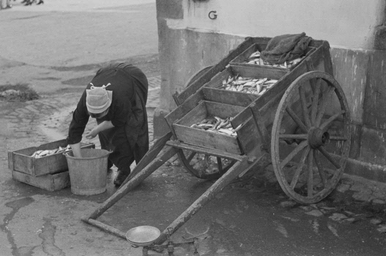 A Douarnenez, à proximité du port de pêche, la précieuse cargaison est chargée dans une charrette.