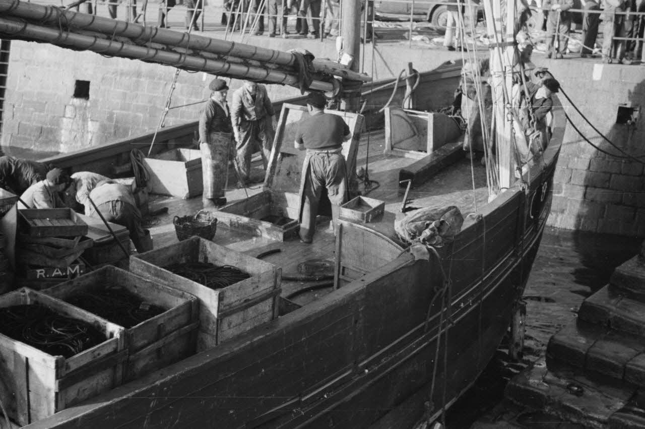 Déchargement des poissons lors du retour des pêcheurs au port de Douarnenez.